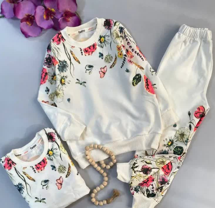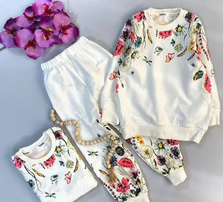 بلوز شلوار دخترانه گل و بلبل اقتصادی سایز بندی 50 55