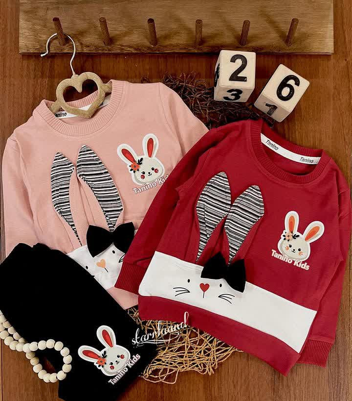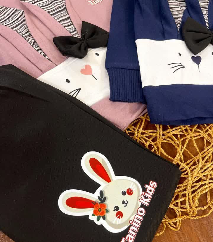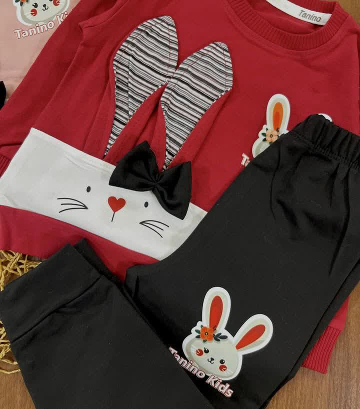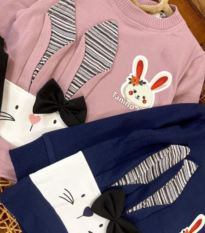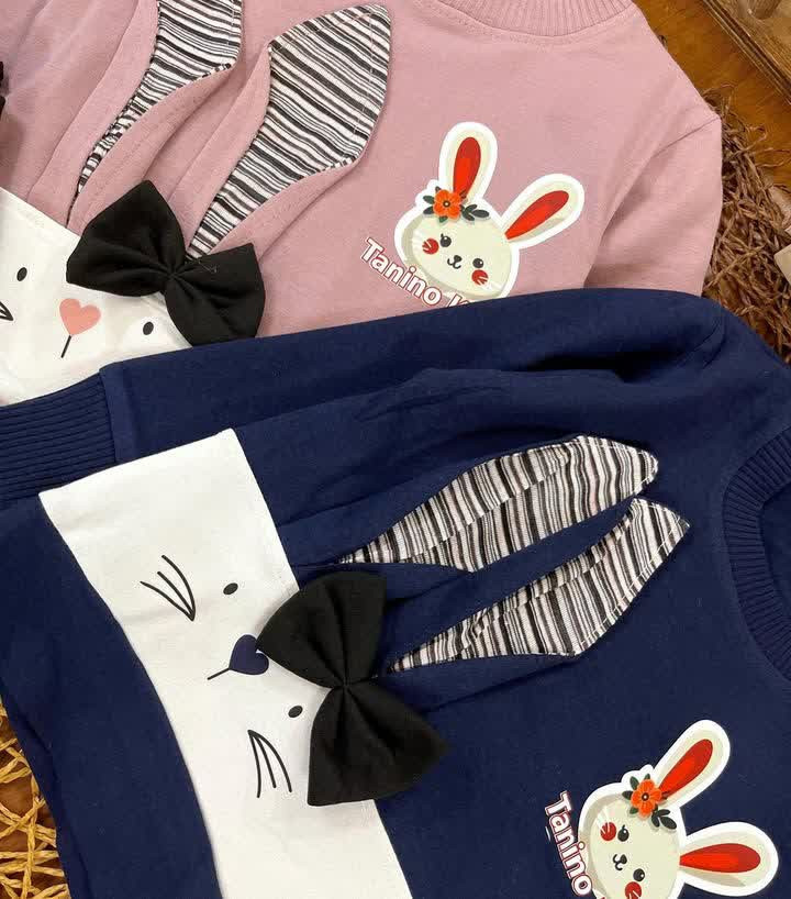 بلوز شلوار خرگوش گوش دار پاپیونی دخترانه اقتصادی سایز بندی 35