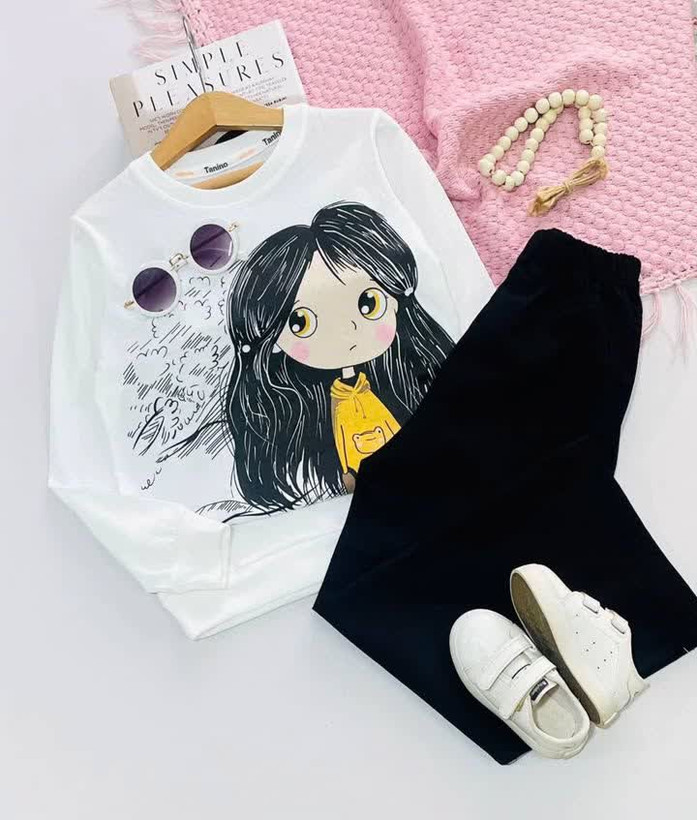 بلوز شلوار دختر مو مشکی دخترانه اقتصادی سایز بندی 60 65