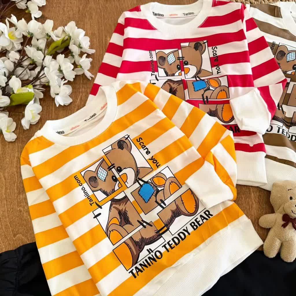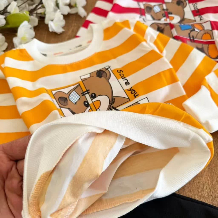 بلوز شلوار راه راه خرس زخمی اسپرت اقتصادی سایز بندی 35 40 45