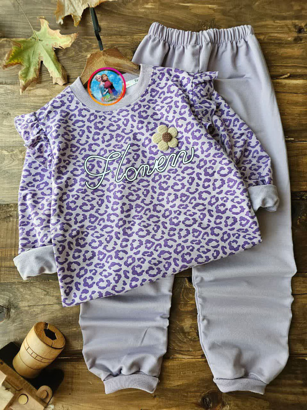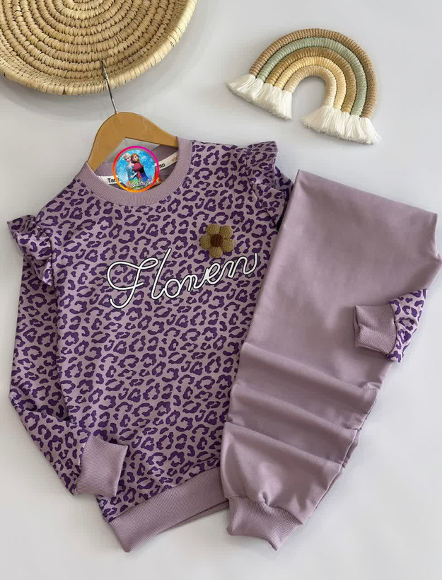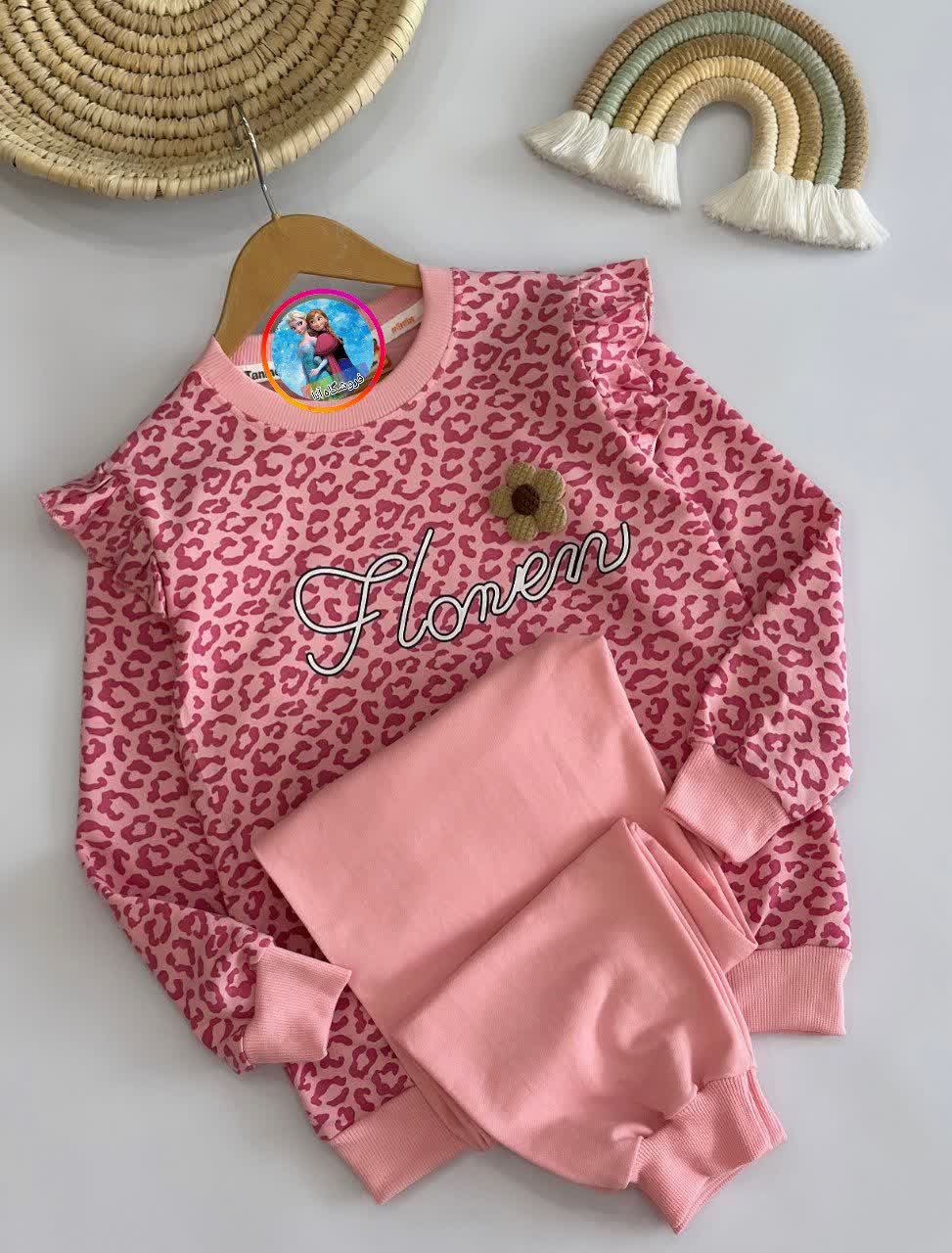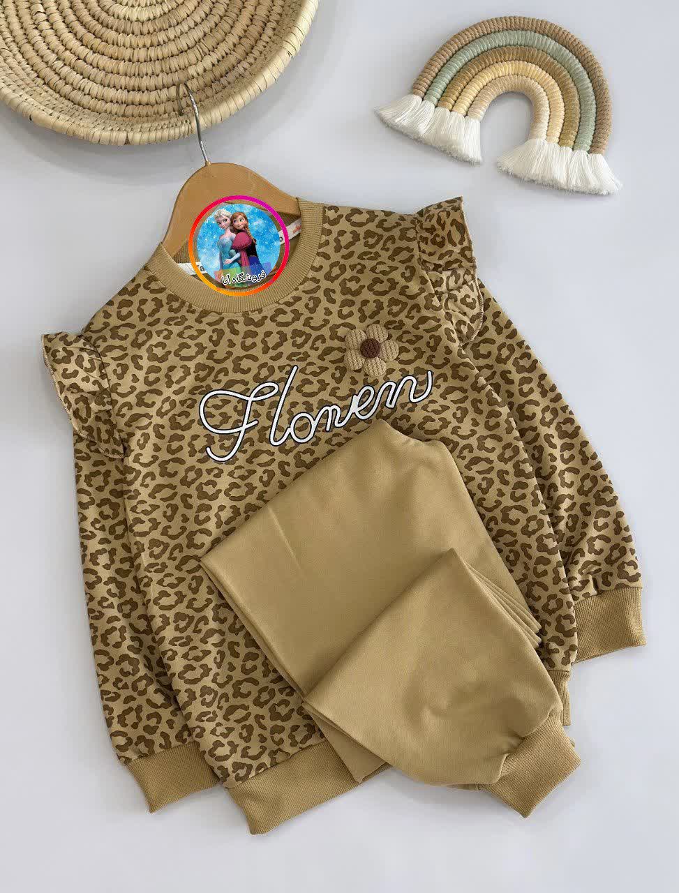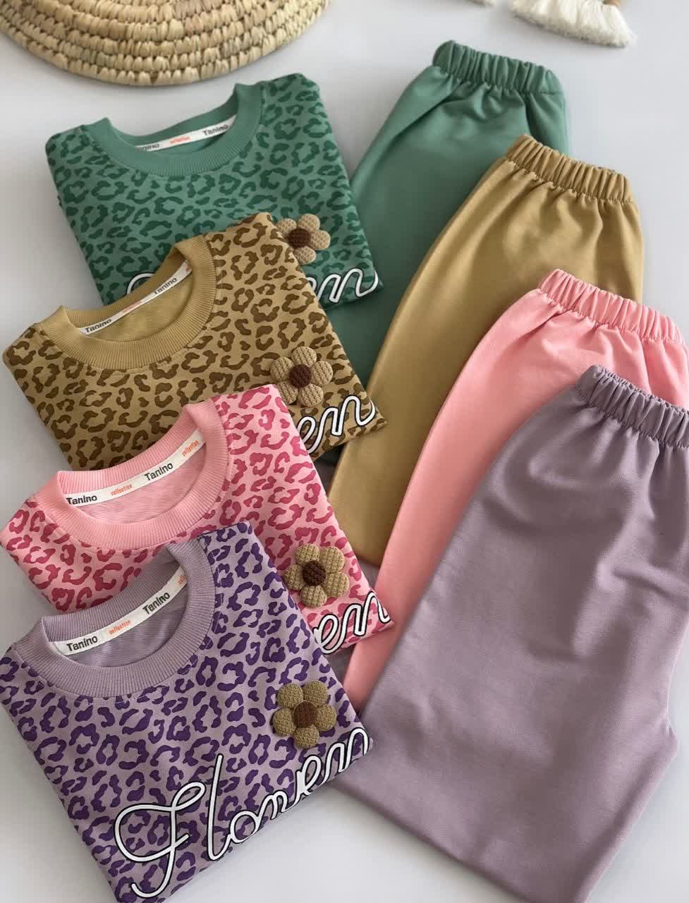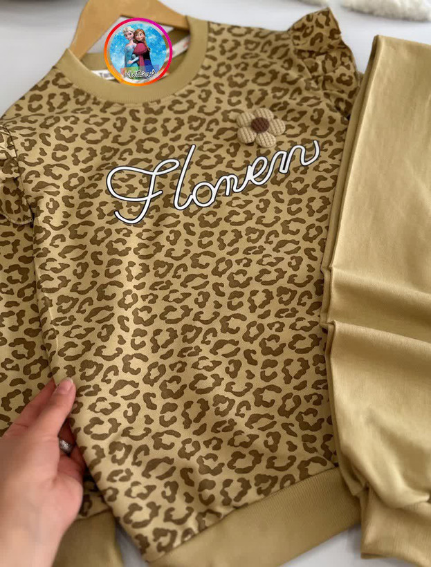 بلوز شلوار پلنگی مدل گل رنگی سایز بندی 40 45
