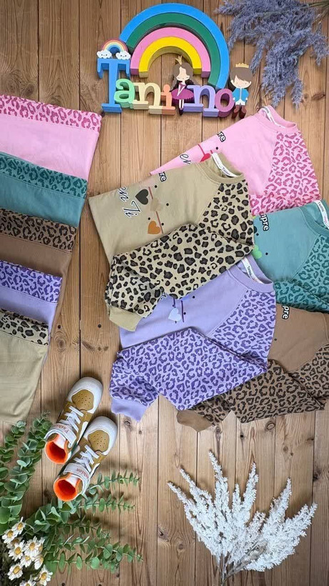 بلوز شلوار قلبی پلنگی سایز بندی 60 65