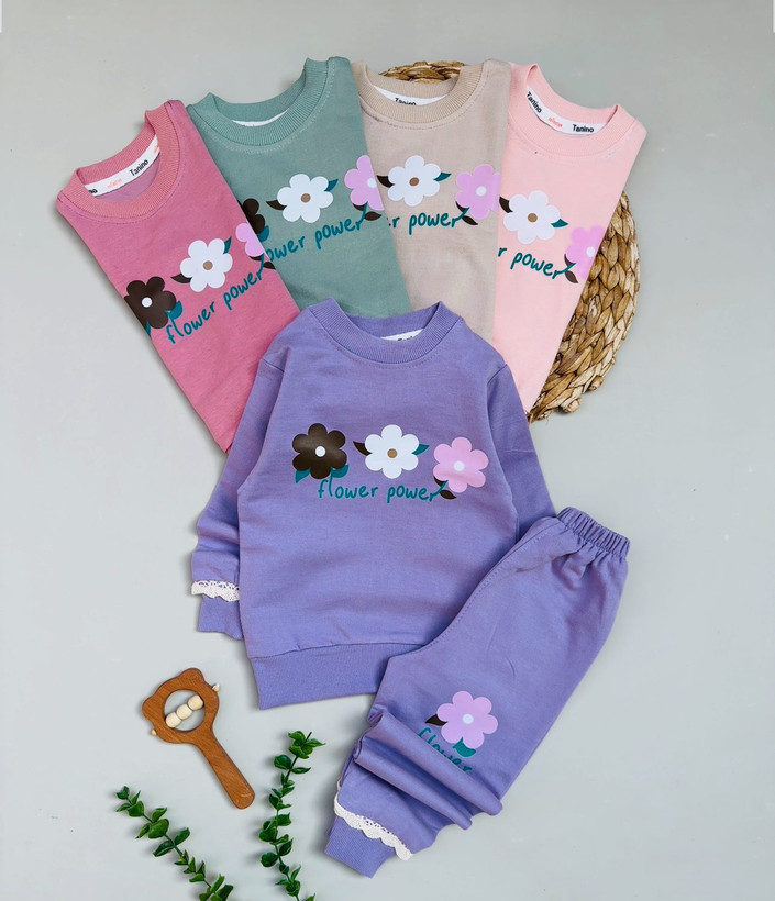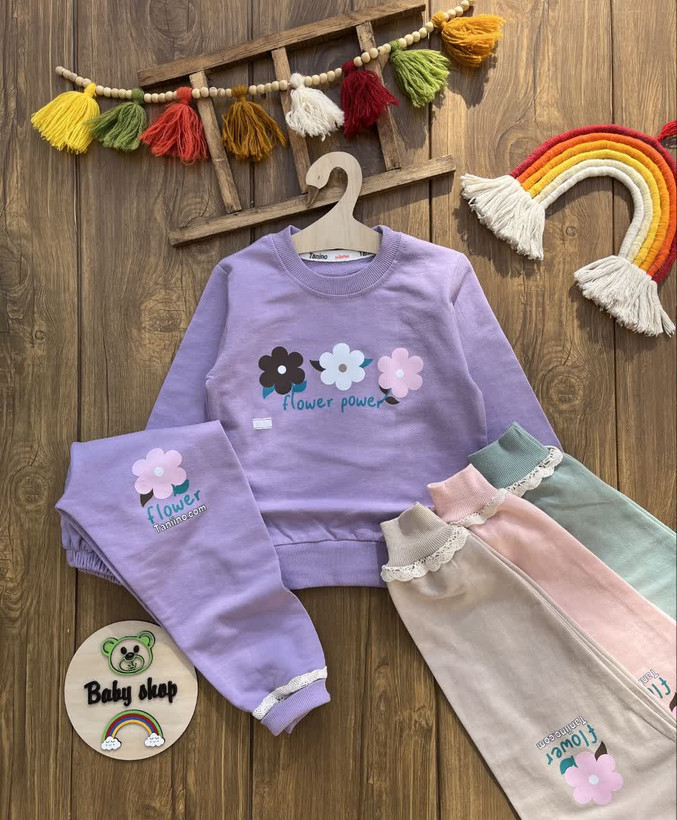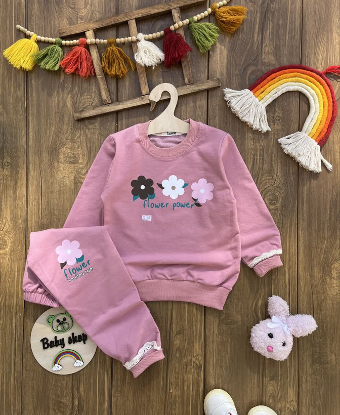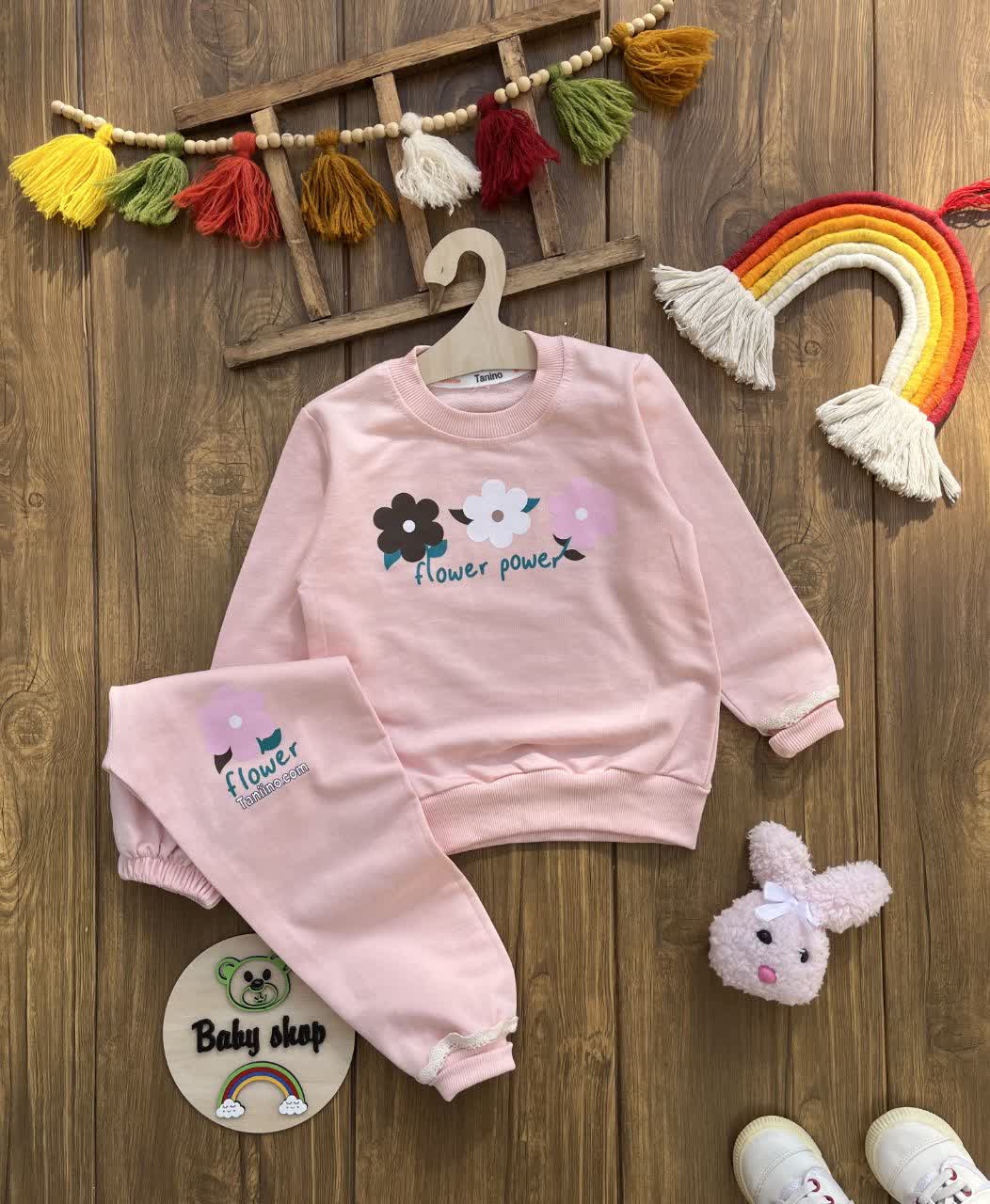 بلوز شلوار سه گل دخترانه اقتصادی سایز بندی 35 40 45