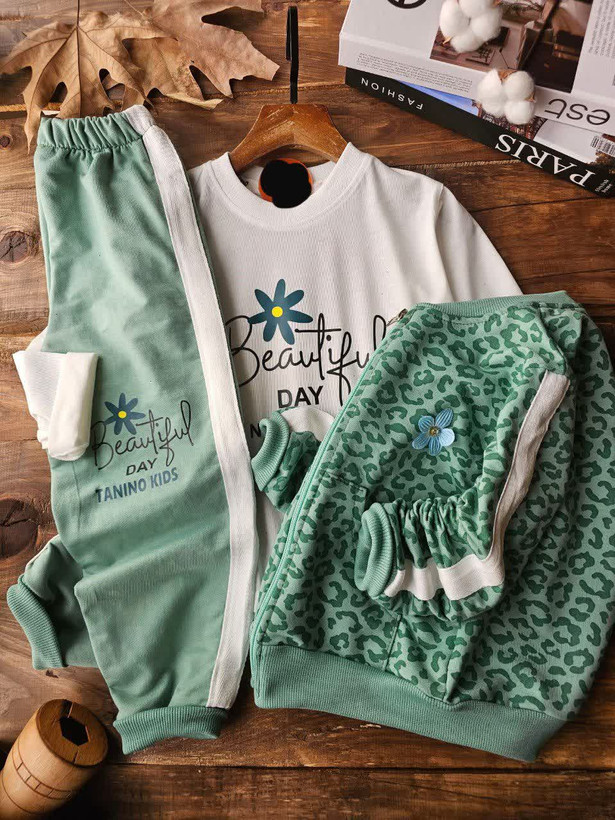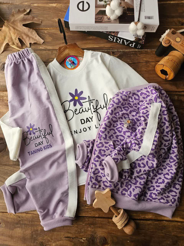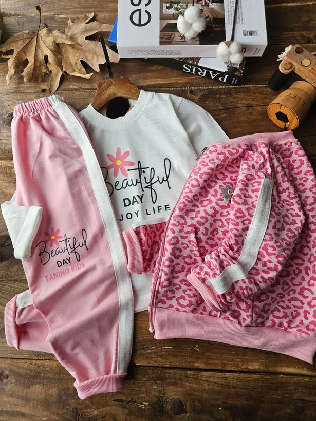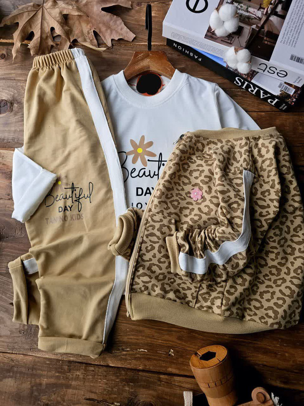 سه تیکه سویشرت شلوار پلنگی دخترانه اقتصادی سایز بندی 40 45