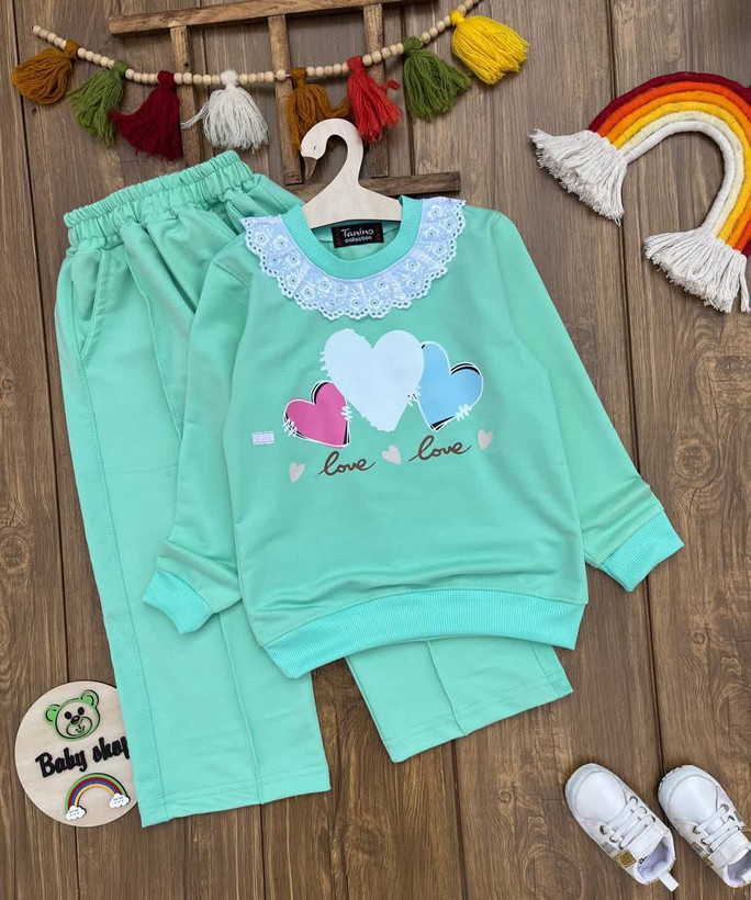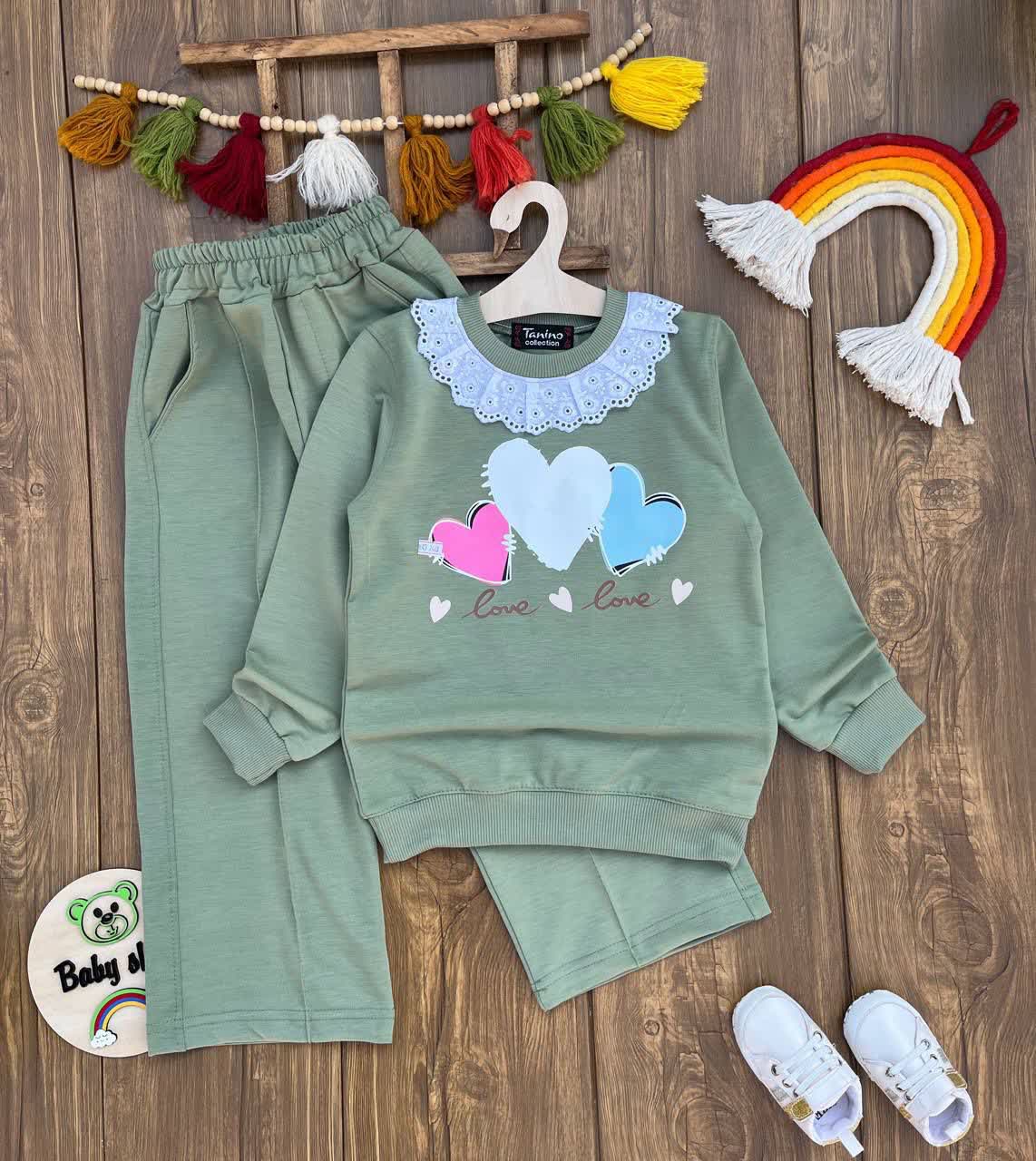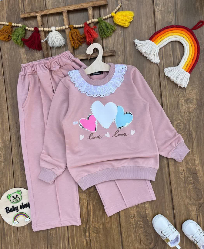 بلوز شلوار سه قلب دخترانه اقتصادی سایز بندی 55 60
