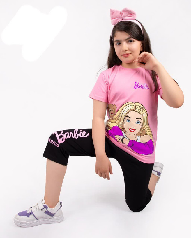 تیشرت شلوارک دخترانه مدل دختر باربی سایز 40