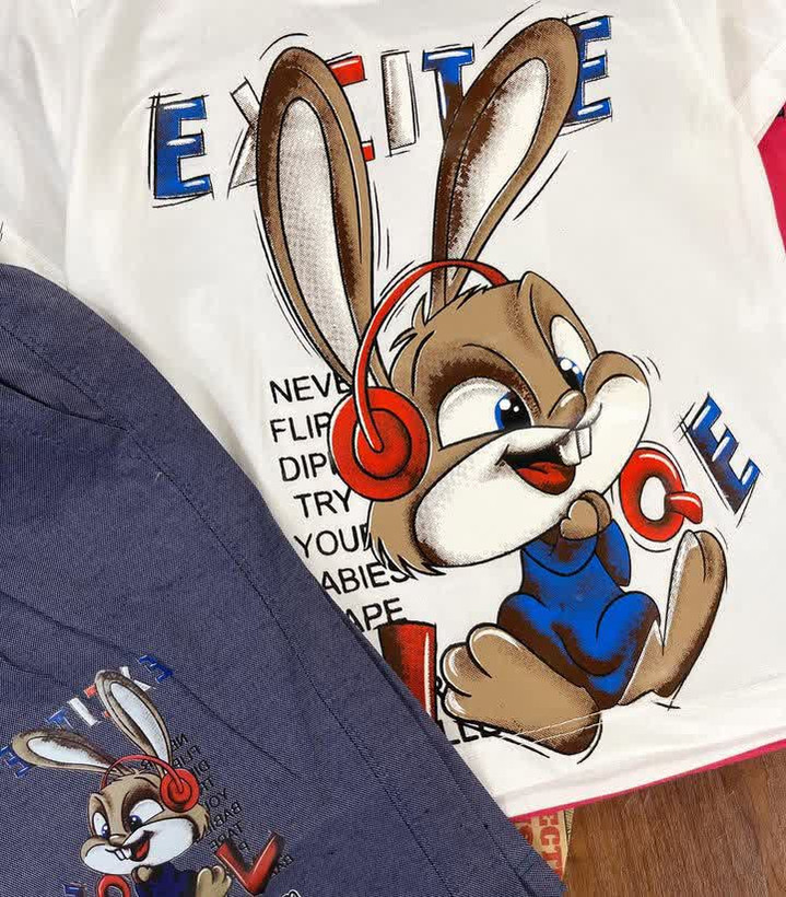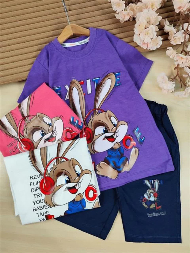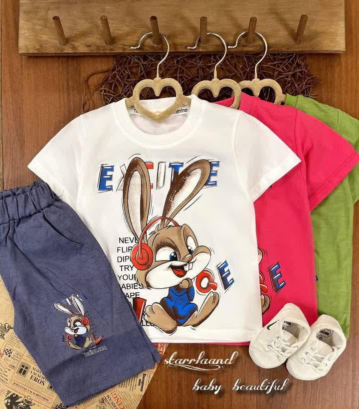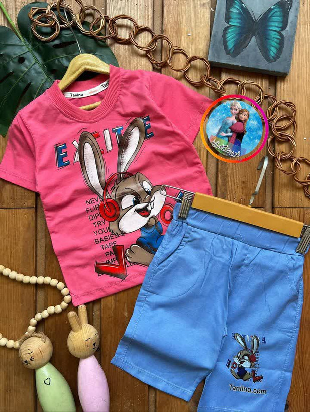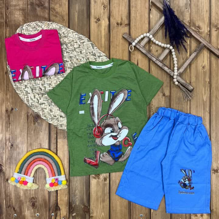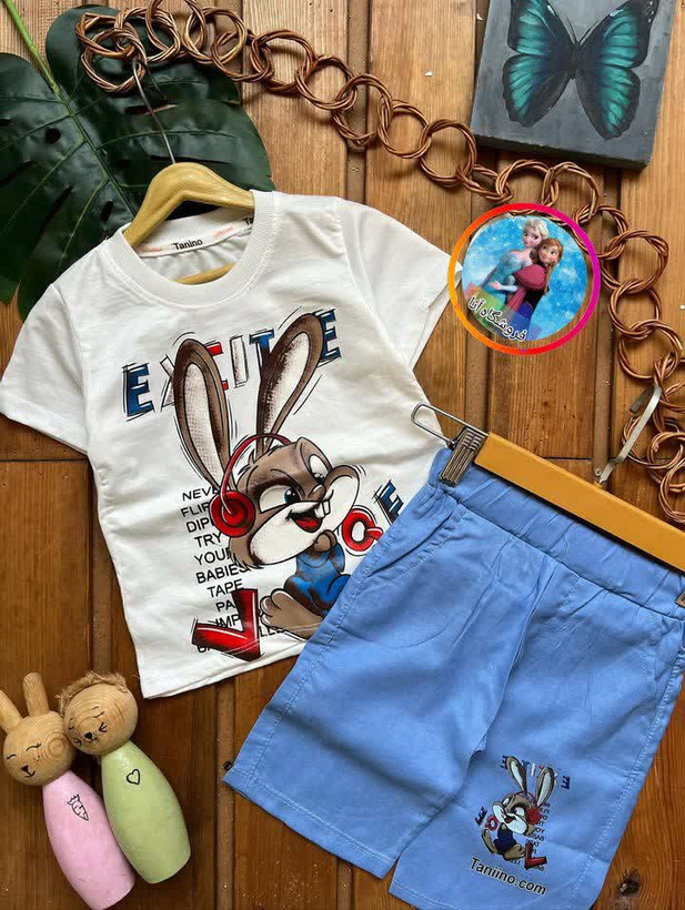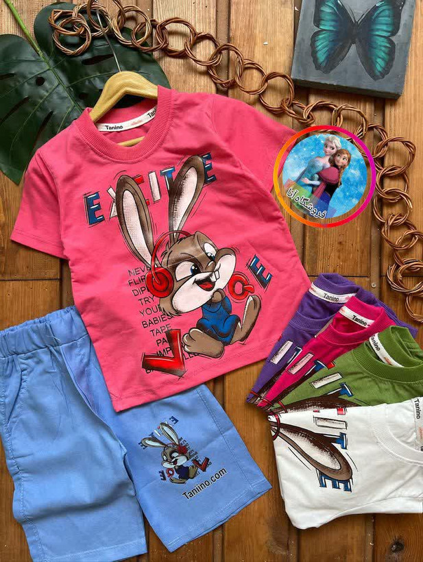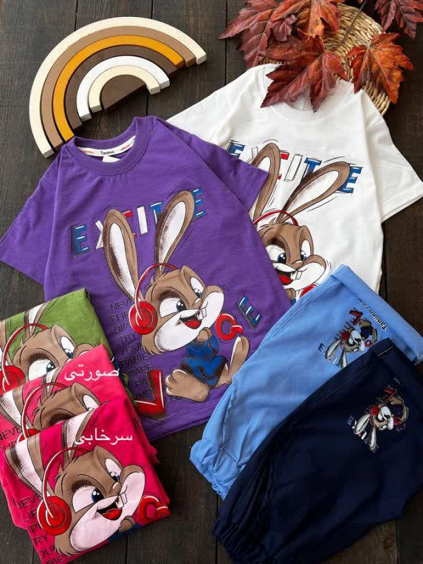 تیشرت شلوارک لی کاغذی طرح خرگوش سایز 40 تا 55