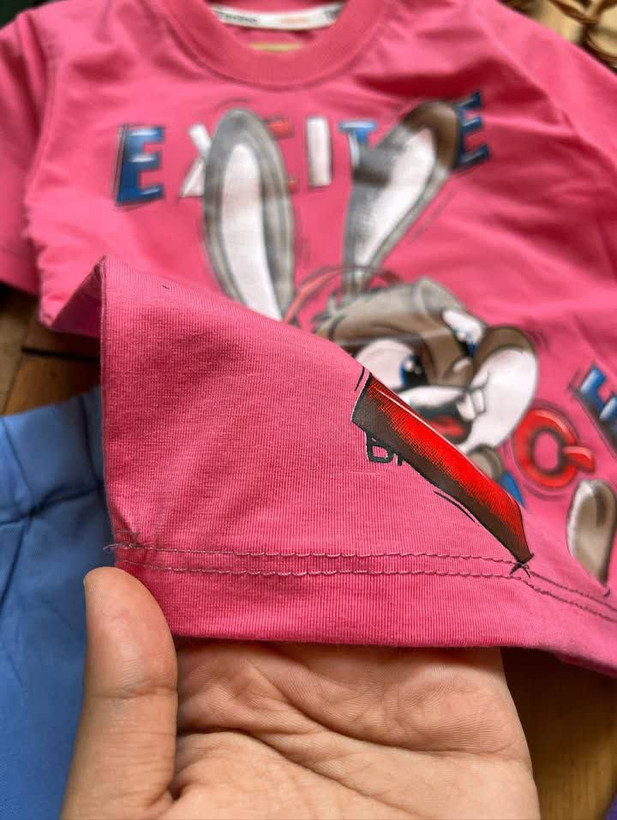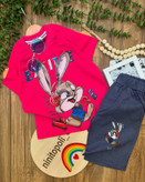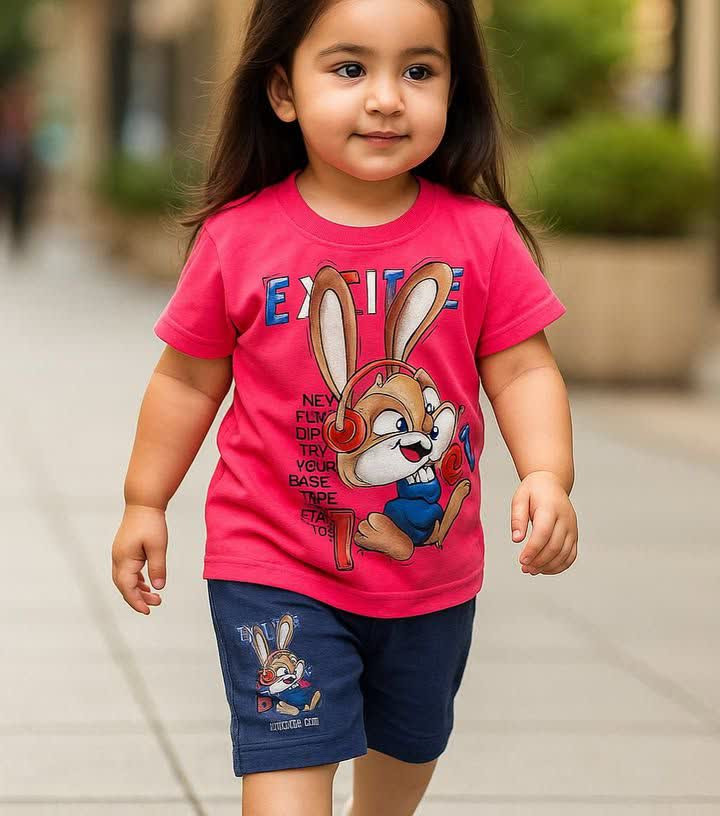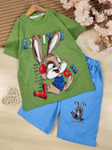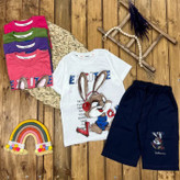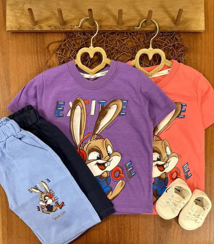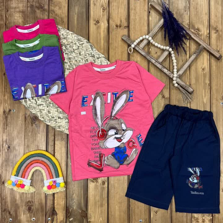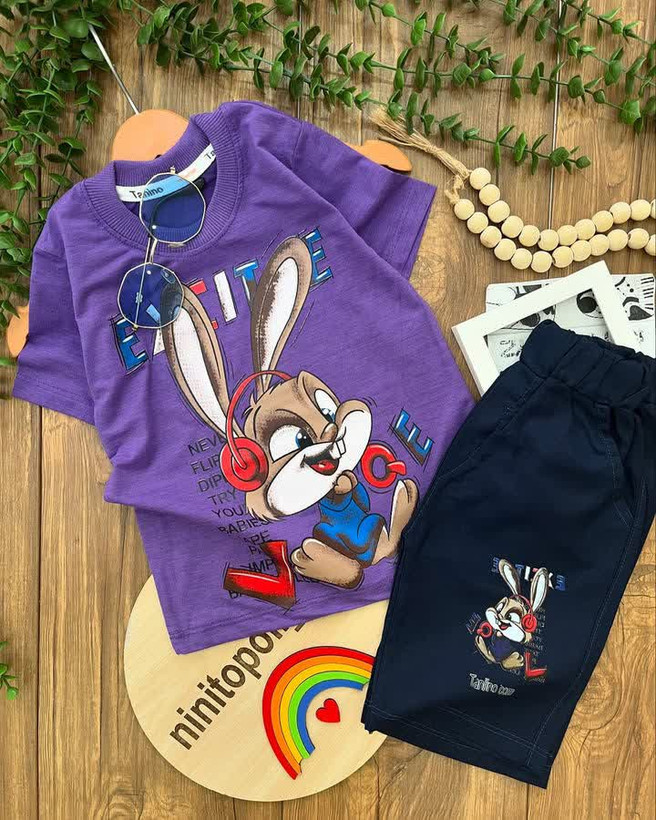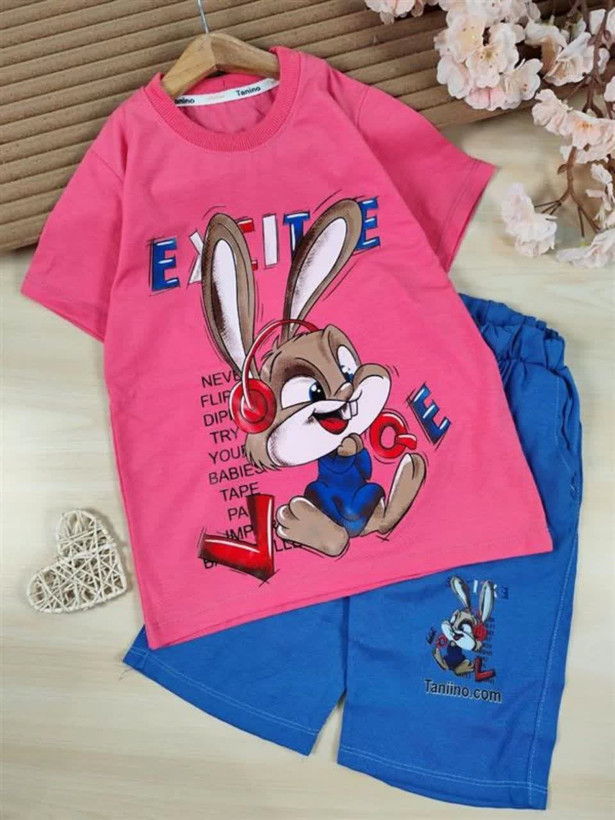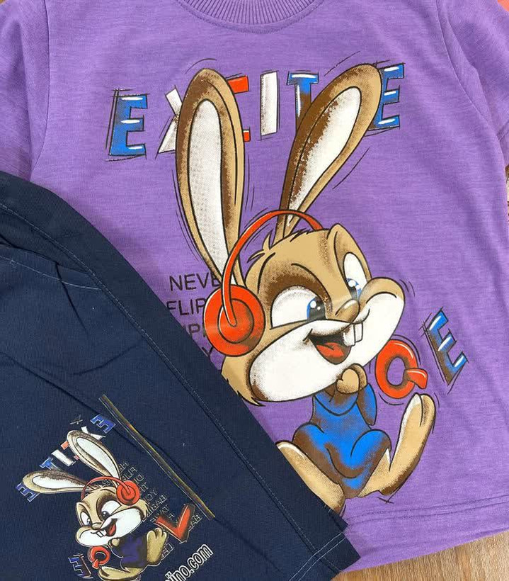 تیشرت شلوارک لی کاغذی طرح خرگوش سایز 40 تا 55