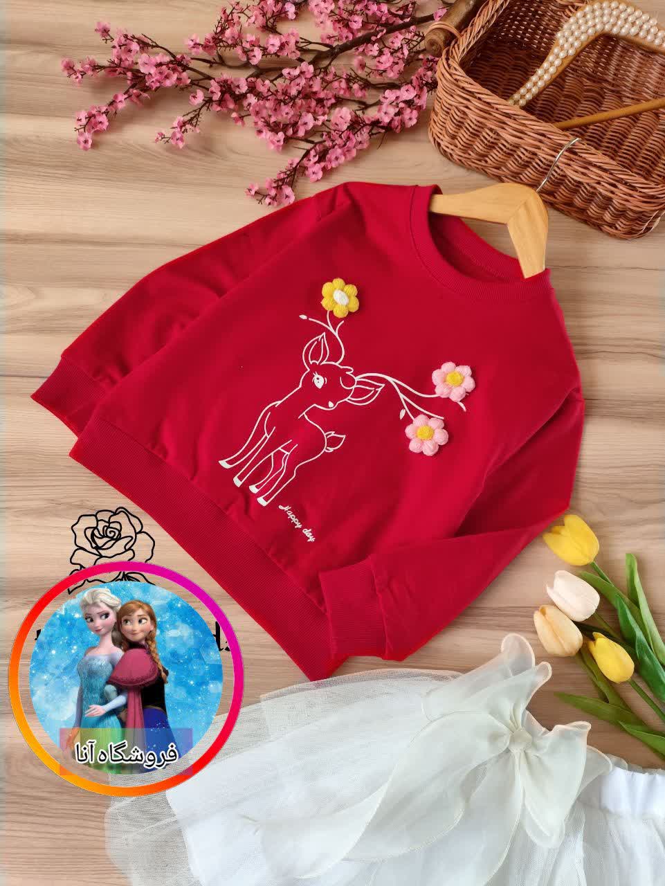 بلوز تک قرمز مدل اهو و گل دخترانه سایز بندی 35 40 45 50