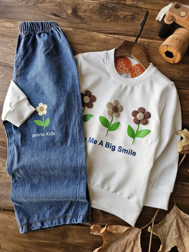 بلوز شلوار سه گل برجسته دخترانه اقتصادی سایز بندی 50 55