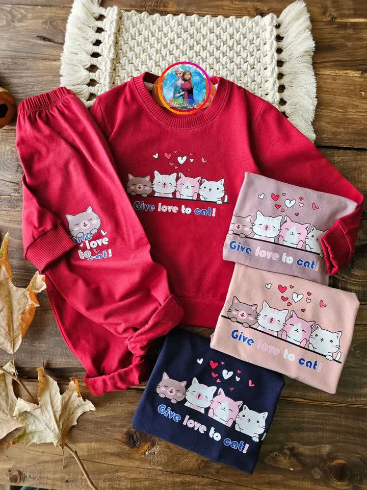 بلوز شلوار اقتصادی مدل گربه دخترانه سایز بندی 35 الی 50