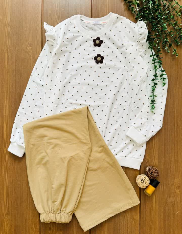 بلوز شلوار خال خالی دخترانه اقتصادی سایز بندی 60 65
